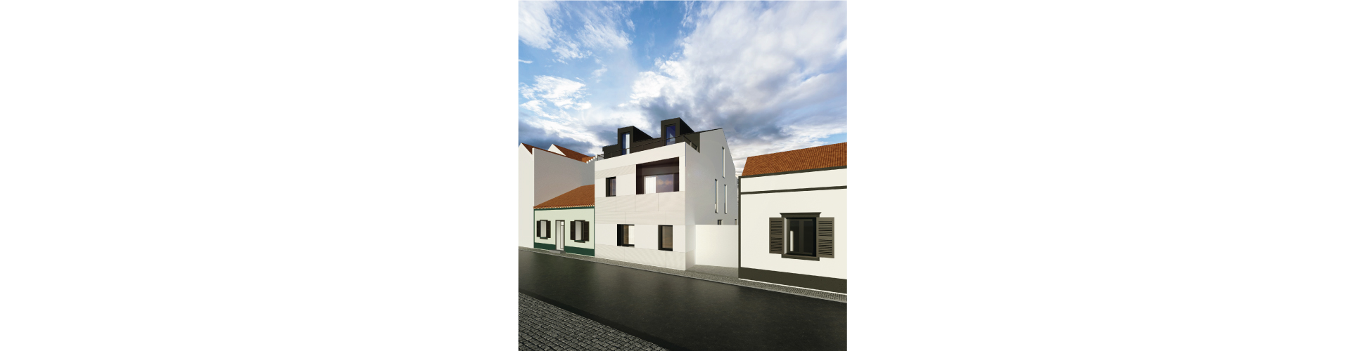Este projecto nasce da necessidade de criar acesso à habitação aumentando a capacidade original e consituíndo duas fracções. O resultado é um objecto que replica a volumetria, os alinhamentos, e ritmos da envolvente com o intuito de obter um bom enquadramento no perfil urbano. É através da materialidade que se destaca a sua contemporaneidade marcando a época da sua construção, propondo melhorias no uso dos espaços e na sua relação com os espaços exteriores.