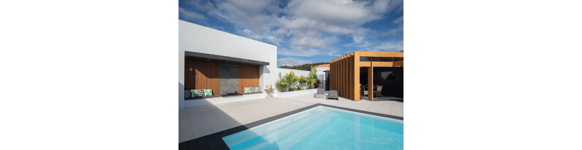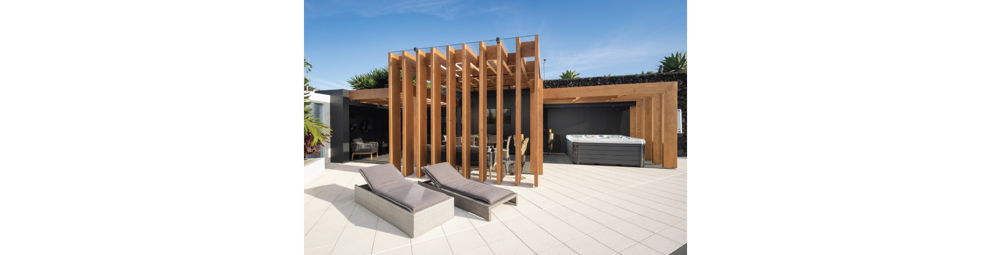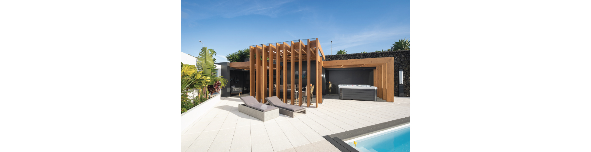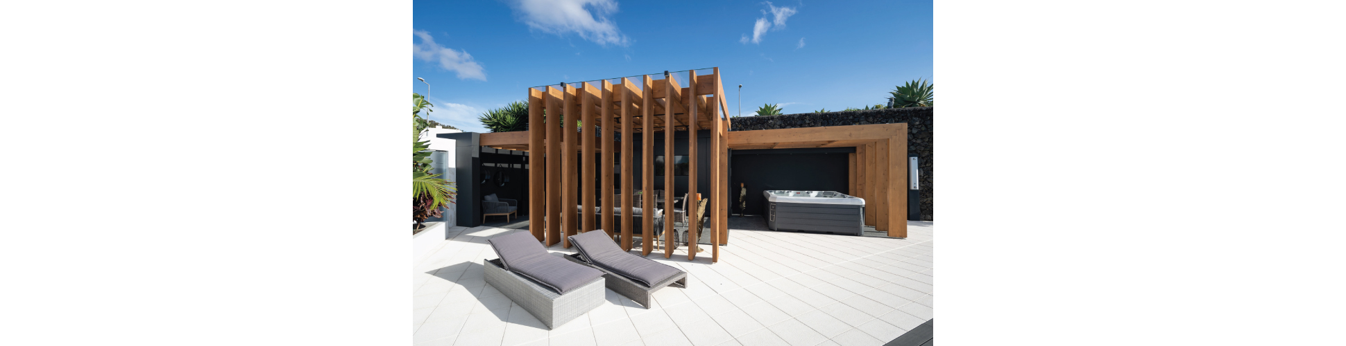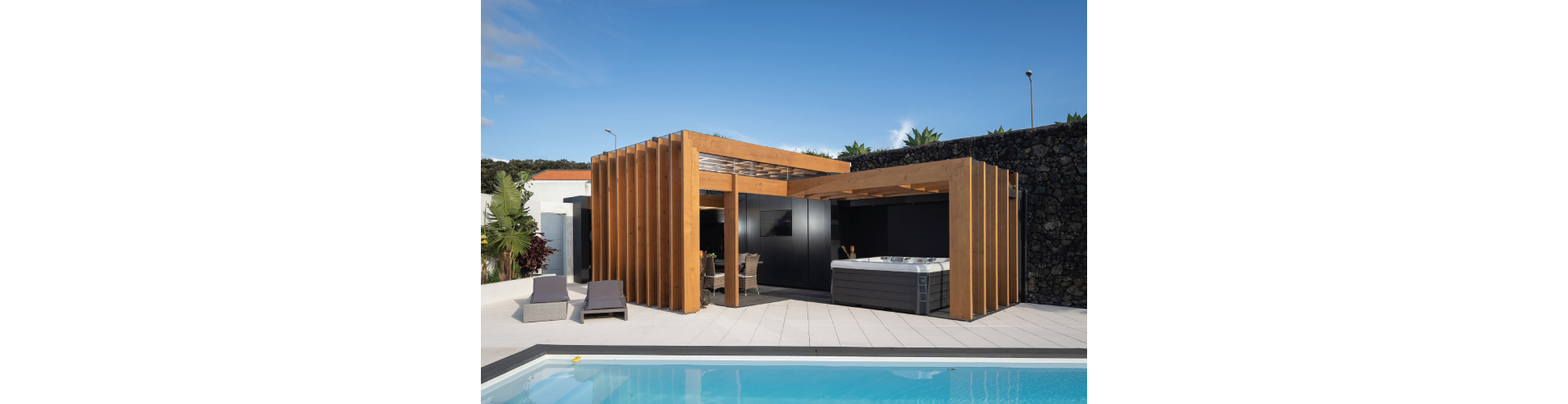 Os espaços exteriores também são para serem habitados, exigindo, por isso, um pensamento e uma intenção de organização na sua criação. A pérgula foi projetada como três volumes de alturas distintas, destinados a albergar três zonas de convívio diferentes. Optou-se por privilegiar a forma e a permanência da retícula da estrutura como um elemento estético, resultando apenas as linhas e contra linhas do ripado de madeira como demarcação de espaço.