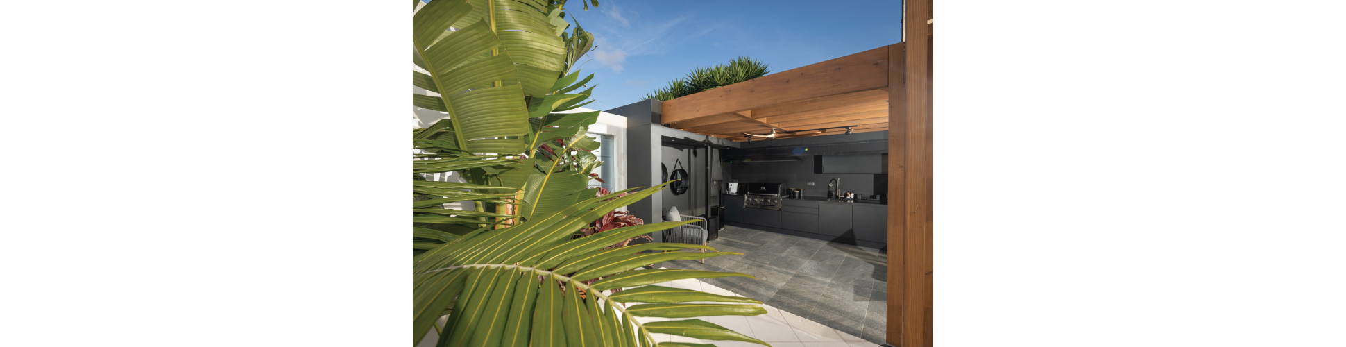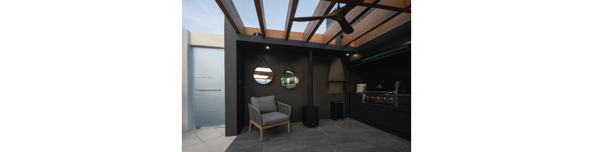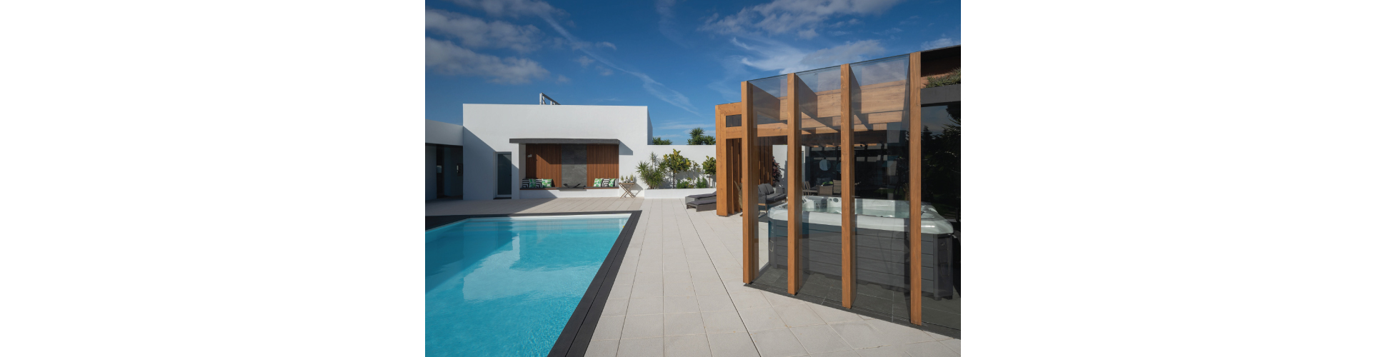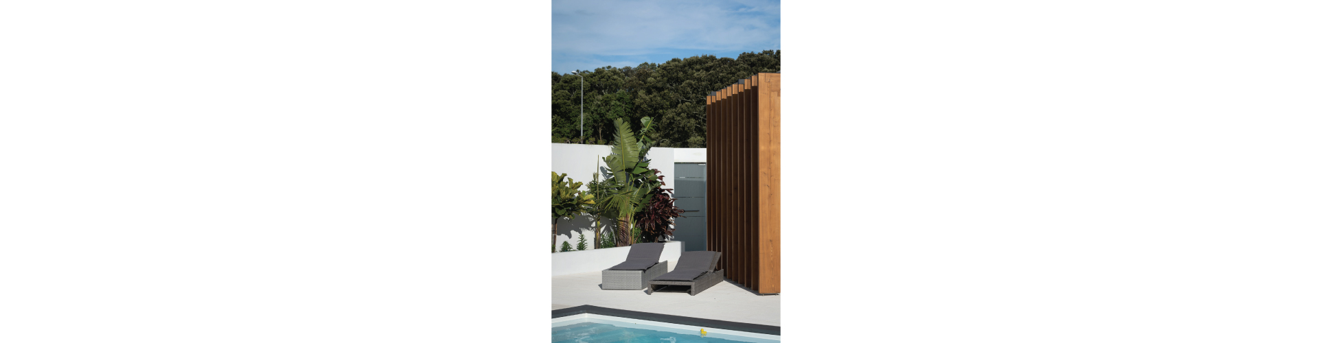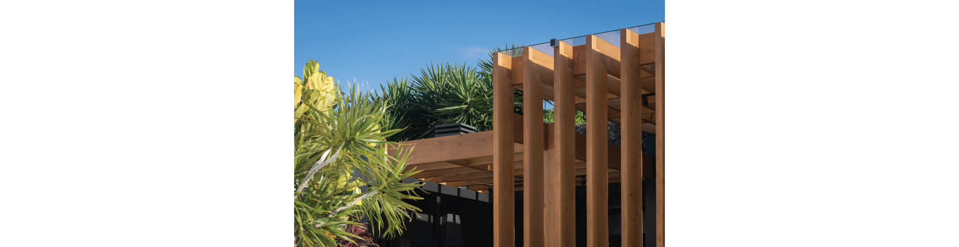Os espaços exteriores também são para serem habitados, exigindo, por isso, um pensamento e uma intenção de organização na sua criação. A pérgula foi projetada como três volumes de alturas distintas, destinados a albergar três zonas de convívio diferentes. Optou-se por privilegiar a forma e a permanência da retícula da estrutura como um elemento estético, resultando apenas as linhas e contra linhas do ripado de madeira como demarcação de espaço.