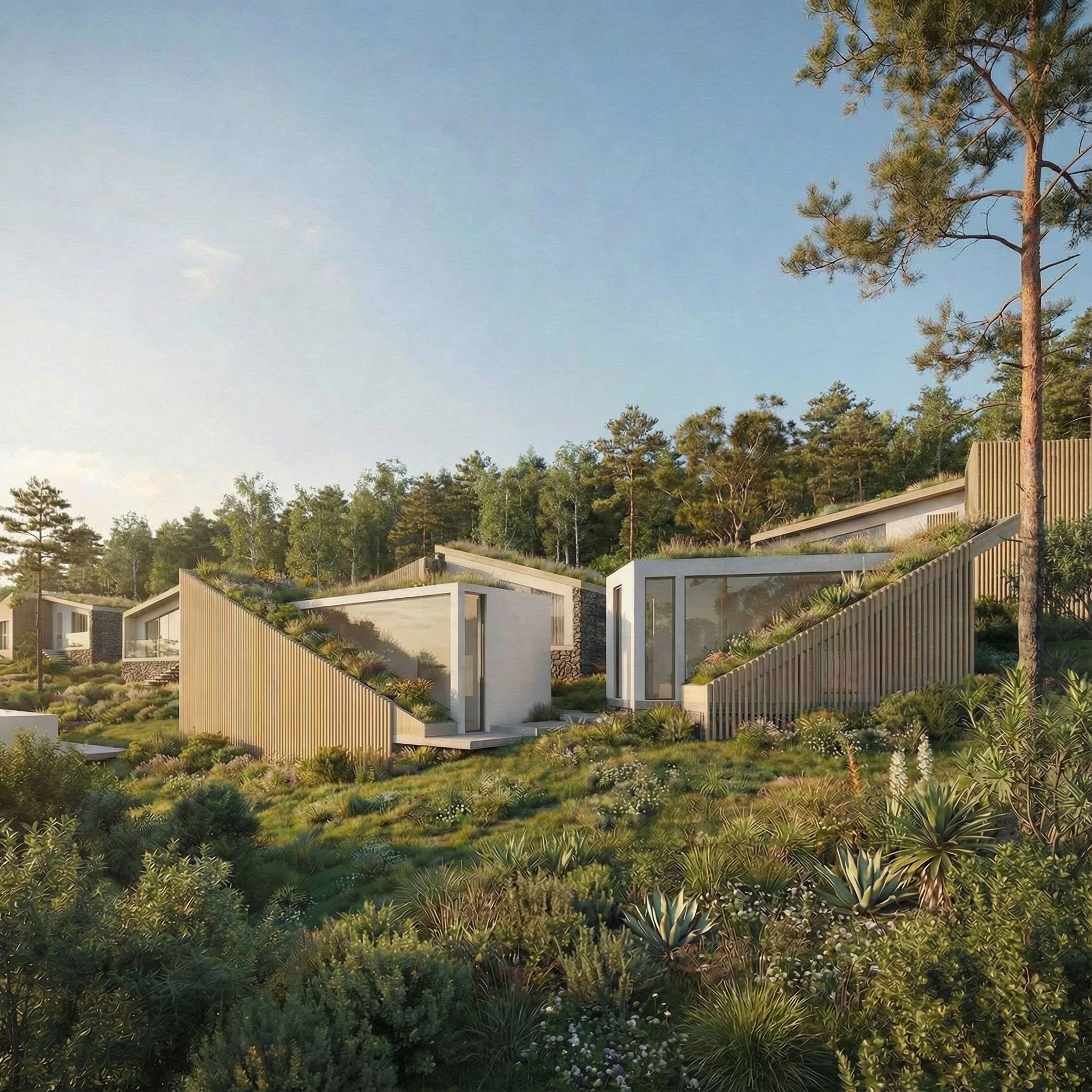 Empreendimento turístico composto por apartamentos, concebido a partir de uma forte relação com o contexto natural envolvente. A proposta privilegia a integração na paisagem, através de uma implantação cuidada e do recurso a materiais naturais, assumindo uma linguagem arquitetónica discreta e coerente com o lugar.