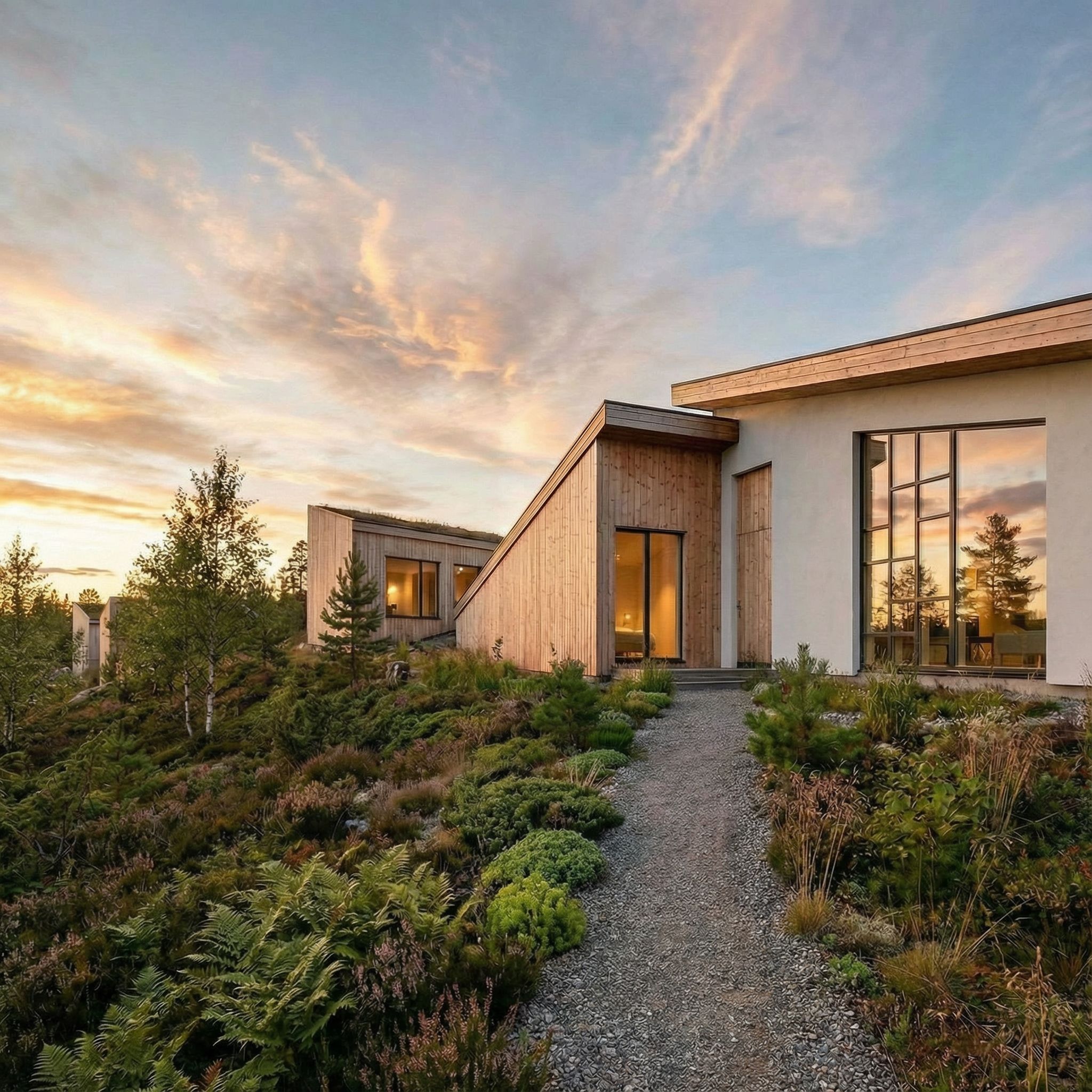 A sustentabilidade do projeto é reforçada por uma abordagem consciente na seleção e utilização de materiais, bem como pela valorização da envolvente natural como elemento estruturante da experiência.
