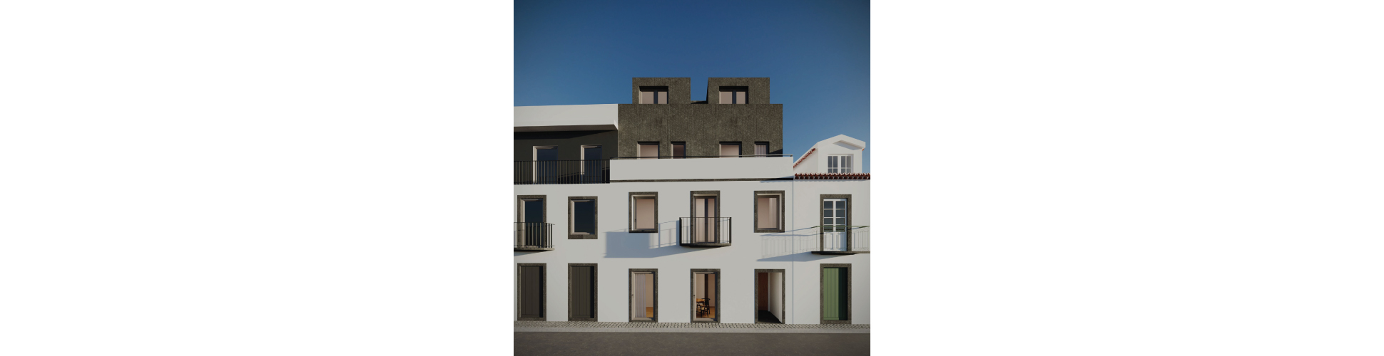 As reabilitações implicam não apenas a restauração das estruturas, mas também a integração harmoniosa no tecido urbano circundante, e este projeto foi um exercício de contextualização com o seu entorno. Na nossa abordagem, valorizamos a preservação e o cuidado com o existente, enquanto a ampliação se manifesta de forma contemporânea através da escolha cuidadosa dos materiais, da volumetria e da simplicidade arquitetónica.